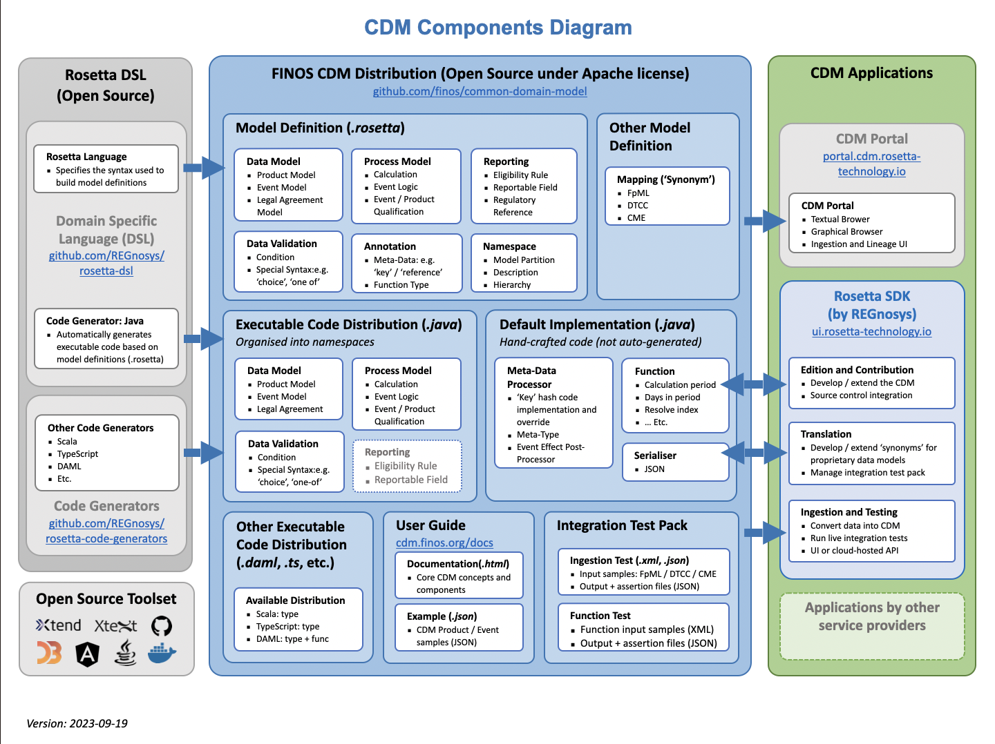 Note: The CDM Portal and Rosetta have been developed by technology firm REGnosys. FINOS encourages the adoption of CDM by software providers but does not endorse any CDM application component.